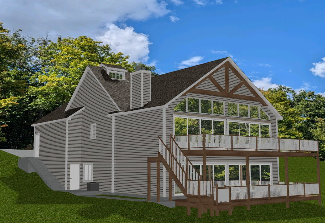 T. K. Ladd, a Ft. Wayne architect, designed this single story cottage with walk-out basement. The home makes efficient use of the building site by providing deck area over the recreation room in the basement. The large covered porch on the street side of the home offers an exterior area to relax on rainy days. The great room has exposed structural elements that create additional interest in the volume ceiling.
